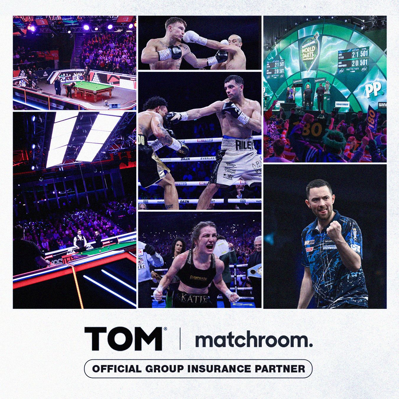 Matchroom Sport is delighted to today announce TOM – the UK’s leading, digital no-nonsense insurance brand designed with dads and lads in mind – as its new, official group insurance partner.